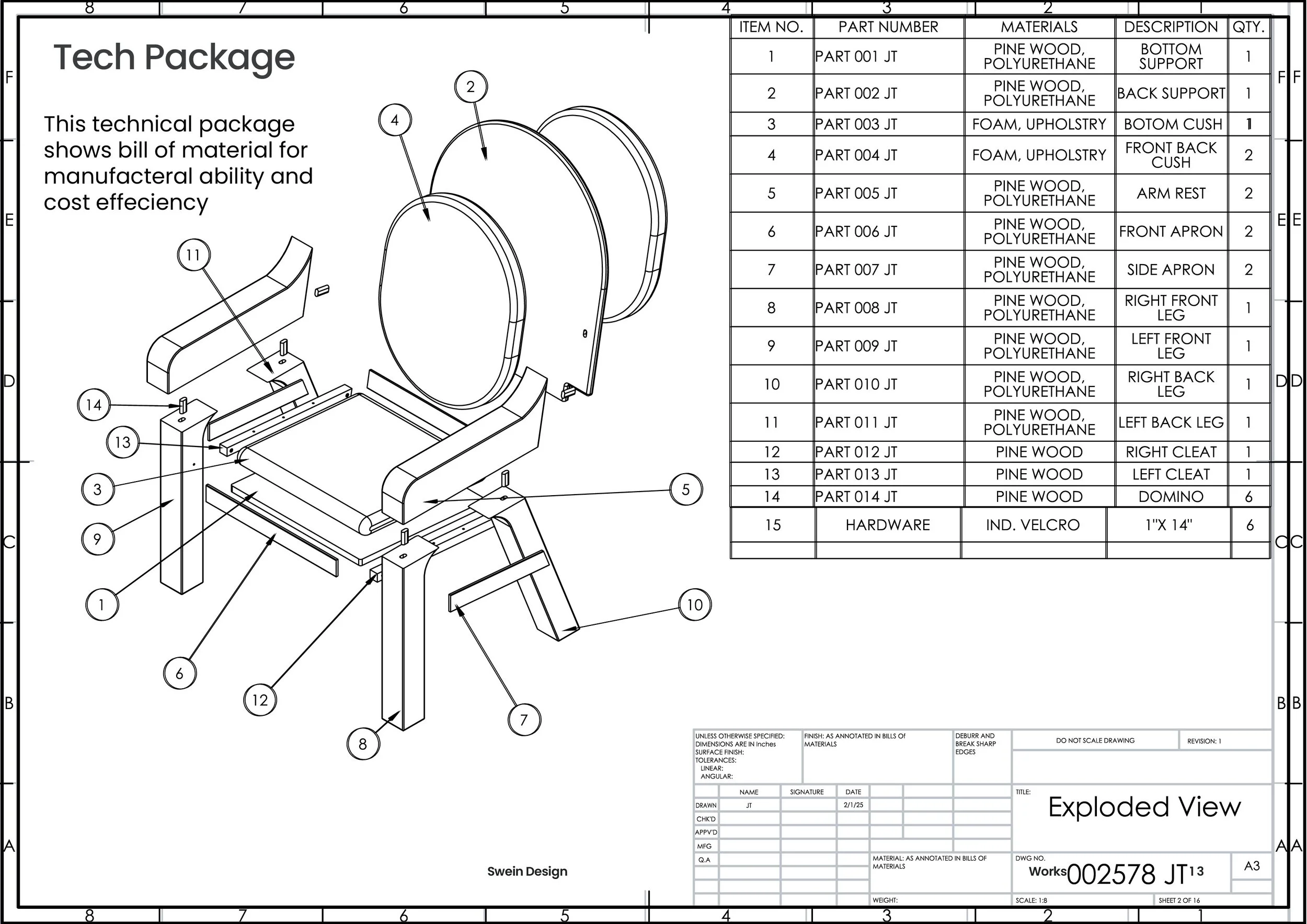 This was individual project with the main goal of designing a chair for manufacturable purposes. This simple chair was made for dorm room like settings and is designed to be not only manufactured but easy to build. This project involved soldier sketching, understanding of material properties, basic manufacturing, and tech packages.
